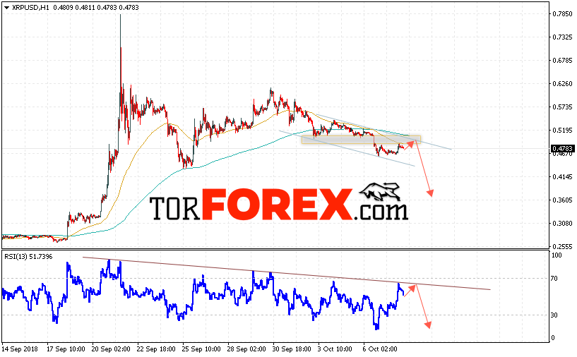 Таким образом, Криптовалюта Ripple прогноз курса на 9 октября 2018 предполагает попытку теста уровня сопротивления вблизи области 0.4900, откуда стоит ожидать продолжения падения криптовалюты с потенциальной целью на уровне 0.3650, дополнительным сигналом в пользу снижения Ripple выступит тест линии тренда на индикаторе относительной силы, отменой варианта падения котировок станет сильный рост и пробой области 0.5150, в этом случае стоит ожидать продолжения развития восходящей тенденции по цифровой валюте.
