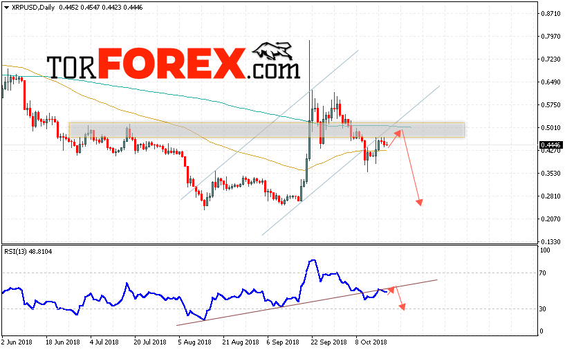 Таким образом, Криптовалюта Ripple прогноз на 22 — 26 октября 2018 предполагает попытку теста уровня сопротивления вблизи области 0.4850, откуда стоит ожидать продолжения падения котировок с потенциальной целью на уровне 0.2500, дополнительным сигналом в пользу снижения Ripple выступит тест линии тренда на индикаторе относительной силы, отменой падения криптовалюты выступит пробой области 0.5300, что укажет на продолжение роста.
