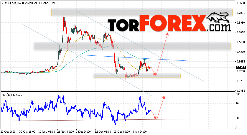 Таким образом, Криптовалюта XRP прогноз курса на 14 января 2021 предполагает попытку теста уровня поддержки вблизи области 0.2055. Откуда стоит ожидать продолжения подъёма криптовалюты с потенциальной целью на уровне 0.6055. Дополнительным сигналом в пользу роста Ripple выступит тест линии тренда на индикаторе относительной силы. Отменой варианта подъёма котировок станет падение и пробой области 0.1545. В этом случае стоит ожидать продолжения снижения подъёма по цифровой валюте с целью ниже 0.0825.
