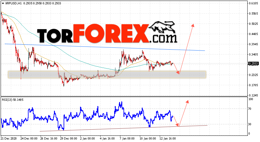 Таким образом, Криптовалюта XRP прогноз курса на 15 января 2021 предполагает попытку теста уровня поддержки вблизи области 0.2345. Откуда стоит ожидать продолжения подъёма криптовалюты с потенциальной целью на уровне 0.5025. Дополнительным сигналом в пользу роста Ripple выступит тест линии тренда на индикаторе относительной силы. Отменой варианта подъёма котировок станет падение и пробой области 0.1655. В этом случае стоит ожидать продолжения снижения подъёма по цифровой валюте с целью ниже 0.1025.