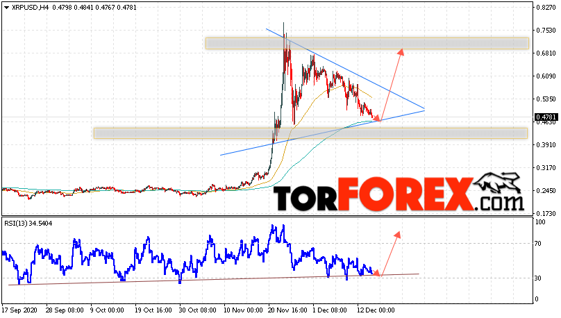 Таким образом, Криптовалюта XRP прогноз курса на 16 декабря 2020 предполагает попытку теста уровня поддержки вблизи области 0.4615. Откуда стоит ожидать продолжения роста криптовалюты с потенциальной целью на уровне 0.6825. Дополнительным сигналом в пользу подъёма Ripple выступит тест линии тренда на индикаторе относительной силы. Отменой варианта роста котировок станет падение и пробой области 0.4055. В этом случае стоит ожидать продолжения развития снижения по цифровой валюте с целью ниже 0.3525.