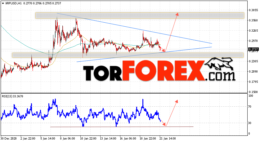 Таким образом, Криптовалюта XRP прогноз курса на 22 января 2021 предполагает попытку теста уровня поддержки вблизи области 0.2655. Откуда стоит ожидать продолжения подъёма криптовалюты с потенциальной целью на уровне 0.3675. Дополнительным сигналом в пользу роста Ripple выступит тест линии тренда на индикаторе относительной силы. Отменой варианта подъёма котировок станет падение и пробой области 0.2335. В этом случае стоит ожидать продолжения снижения подъёма по цифровой валюте с целью ниже 0.1855.