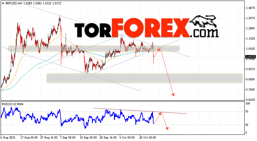 Таким образом, Криптовалюта XRP прогноз курса на 28 октября 2021 предполагает попытку теста уровня сопротивления вблизи области 1.0905. Откуда стоит ожидать продолжения падения криптовалюты с потенциальной целью на уровне 0.6505. Дополнительным сигналом в пользу снижения Ripple выступит тест линии тренда на индикаторе относительной силы. Отменой варианта падения котировок станет сильный рост и пробой области 1.2505. В этом случае стоит ожидать продолжения подъёма подъёма по цифровой валюте с целью выше 1.3505.