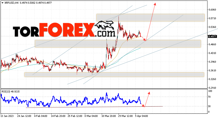 Таким образом, Криптовалюта XRP прогноз на 13 апреля 2023 предполагает попытку теста уровня поддержки вблизи области 0.4705. Откуда стоит ожидать продолжения роста криптовалюты с потенциальной целью на уровне 0.6255. Дополнительным сигналом в пользу подъёма Ripple выступит тест линии сопротивления на индикаторе относительной силы. Отменой варианта роста котировок станет падение и пробой области 0.4305. В этом случае стоит ожидать продолжения снижения по цифровой валюте с целью ниже 0.3605.
