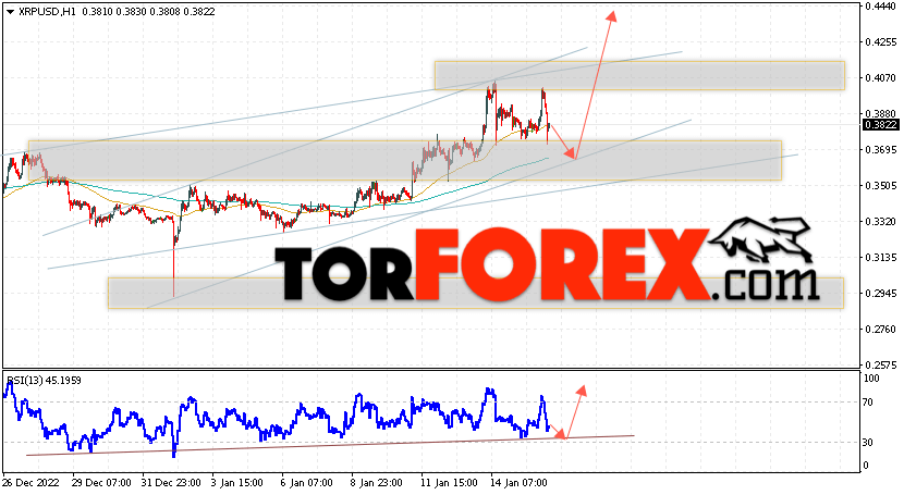 Котировки XRP/USD торгуются на уровне 0.3822 и продолжают движение в рамках коррекции и бычьего канала. Капитализация криптовалюты Ripple в момент публикации прогноза составляет $19,559,483,252. Скользящие средние указывают на наличие краткосрочной бычьей тенденции по Ripple. Цены пробили область между сигнальными линиями вверх, что указывает на давление со стороны покупателей актива и потенциальное продолжение роста курса XRP на рынке уже с текущих уровней. На данный момент стоит ожидать попытку развития коррекции актива и тест уровня поддержки вблизи области 0.3645. Далее, отскок вверх и продолжение роста криптовалюты в область выше уровня 0.4465.
