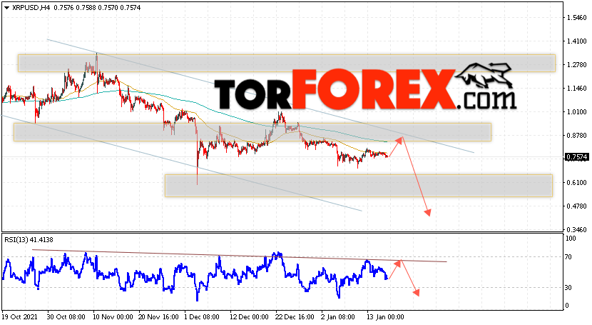 Таким образом, Криптовалюта XRP прогноз на 18 января 2022 предполагает попытку теста уровня сопротивления вблизи области 0.7575. Откуда стоит ожидать продолжения падения криптовалюты с потенциальной целью на уровне 0.4565. Дополнительным сигналом в пользу снижения Ripple выступит тест линии тренда на индикаторе относительной силы. Отменой варианта падения котировок станет сильный рост и пробой области 0.9565. В этом случае стоит ожидать продолжения подъёма по цифровой валюте с целью выше 1.0965.