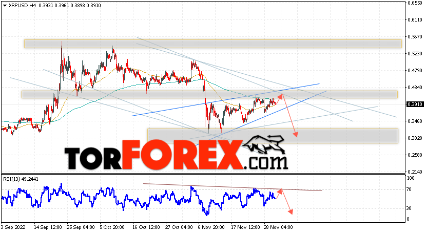 Таким образом, Криптовалюта XRP прогноз на 2 декабря 2022 предполагает попытку теста уровня сопротивления вблизи области 0.4165. Откуда стоит ожидать продолжения падения криптовалюты с потенциальной целью на уровне 0.3005. Дополнительным сигналом в пользу снижения Ripple выступит тест линии сопротивления на индикаторе относительной силы. Отменой варианта снижения котировок станет сильный рост и пробой области 0.4385. В этом случае стоит ожидать продолжения подъёма по цифровой валюте с целью выше 0.5165.