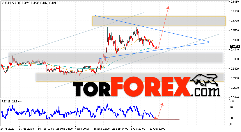 Таким образом, Криптовалюта XRP прогноз на 20 октября 2022 предполагает попытку теста уровня поддержки вблизи области 0.4335. Откуда стоит ожидать продолжения роста криптовалюты с потенциальной целью на уровне 0.6245. Дополнительным сигналом в пользу подъёма Ripple выступит тест бычьей линии тренда на индикаторе относительной силы. Отменой варианта роста котировок станет падение и пробой области 0.3825. В этом случае стоит ожидать продолжения снижения по цифровой валюте с целью ниже 0.3235.