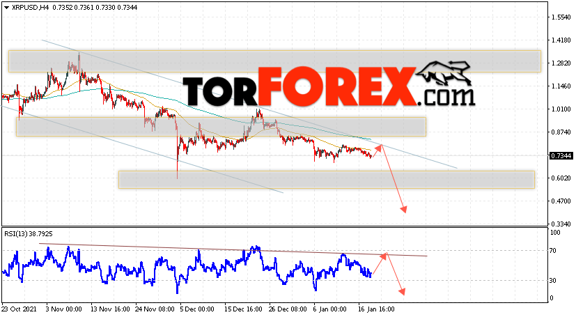 Таким образом, Криптовалюта XRP прогноз на 20 января 2022 предполагает попытку теста уровня сопротивления вблизи области 0.7505. Откуда стоит ожидать продолжения падения криптовалюты с потенциальной целью на уровне 0.4565. Дополнительным сигналом в пользу снижения Ripple выступит тест линии тренда на индикаторе относительной силы. Отменой варианта падения котировок станет сильный рост и пробой области 0.8505. В этом случае стоит ожидать продолжения подъёма по цифровой валюте с целью выше 1.0755.