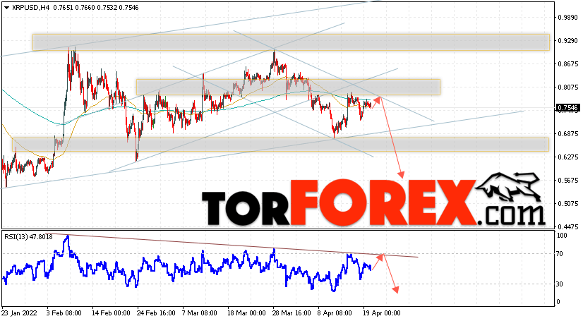 Таким образом, Криптовалюта XRP прогноз на 21 апреля 2022 предполагает попытку теста уровня сопротивления вблизи области 0.7615. Откуда стоит ожидать продолжения падения криптовалюты с потенциальной целью на уровне 0.5675. Дополнительным сигналом в пользу снижения Ripple выступит тест линии тренда на индикаторе относительной силы. Отменой варианта падения котировок станет сильный рост и пробой области 0.8255. В этом случае стоит ожидать продолжения подъёма по цифровой валюте с целью выше 0.8915.