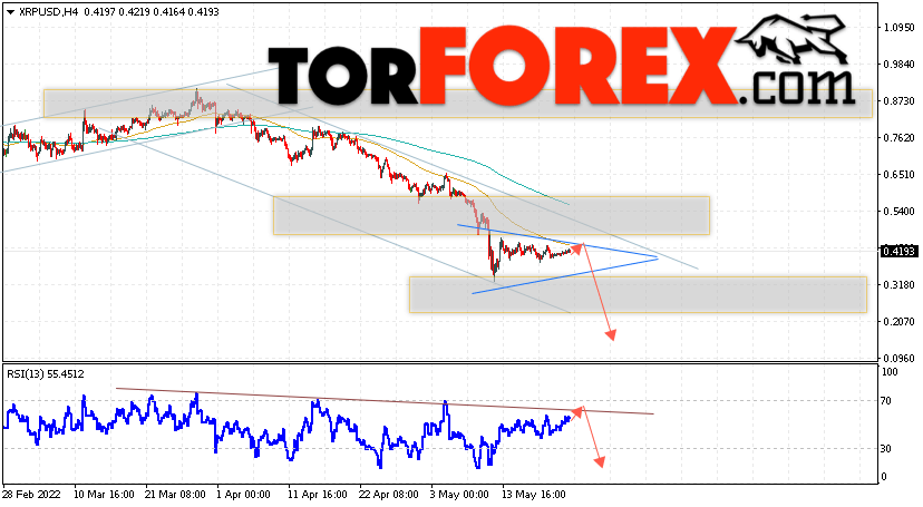 Таким образом, Криптовалюта XRP прогноз на 24 мая 2022 предполагает попытку теста уровня сопротивления вблизи области 0.4295. Откуда стоит ожидать продолжения падения криптовалюты с потенциальной целью на уровне 0.1565. Дополнительным сигналом в пользу снижения Ripple выступит тест нисходящей линии тренда на индикаторе относительной силы. Отменой варианта падения котировок станет сильный рост и пробой области 0.5255. В этом случае стоит ожидать продолжения подъёма по цифровой валюте с целью выше 0.5985.