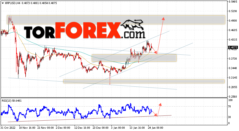 В пользу роста котировок XRP/USD выступит тест линии поддержки на индикаторе относительной силы. Вторым сигналом в пользу роста актива станет отскок от нижней границы бычьего канала. Отменой варианта роста криптовалюты станет падение и закрытие котировок ниже уровня 0.3505. Это укажет на пробой области поддержки и продолжение падения XRP/USD в область ниже уровня 0.2775. Подтверждением росту курса цифровой валюты выступит пробой области сопротивления и закрытие цен над уровнем 0.4485.