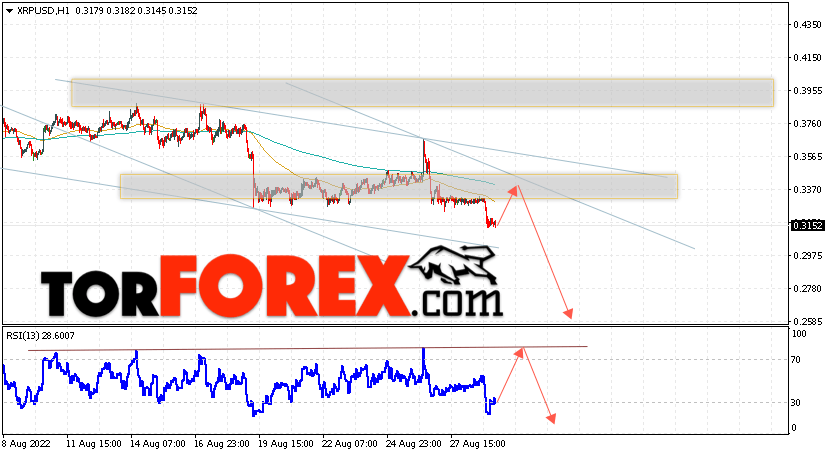 Таким образом, Криптовалюта XRP прогноз на 30 августа 2022 предполагает попытку теста уровня сопротивления вблизи области 0.3375. Откуда стоит ожидать продолжения падения криптовалюты с потенциальной целью на уровне 0.2585. Дополнительным сигналом в пользу снижения Ripple выступит тест нисходящей линии тренда на индикаторе относительной силы. Отменой варианта падения котировок станет сильный рост и пробой области 0.3705. В этом случае стоит ожидать продолжения подъёма по цифровой валюте с целью выше 0.4505.