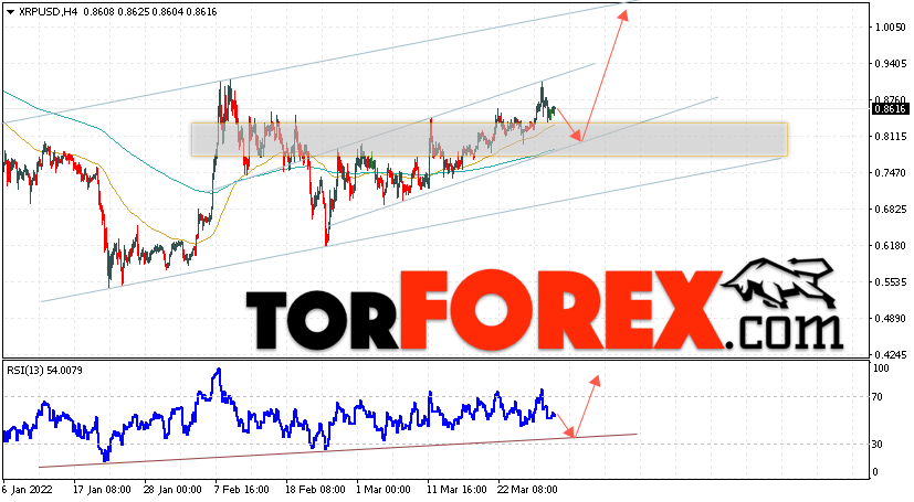 Котировки XRP/USD торгуются на уровне 0.8616 и продолжают движение в рамках роста и бычьего канала. Капитализация криптовалюты Ripple в момент публикации прогноза составляет $41,549,704,451. Скользящие средние указывают на наличие краткосрочной бычьей тенденции по Ripple. Цены пробили область между сигнальными линиями вверх, что указывает на давление со стороны покупателей актива и потенциальное продолжение роста курса XRP на рынке уже с текущих уровней. На данный момент стоит ожидать попытку развития коррекции актива и тест уровня поддержки вблизи области 0.8105. Далее, отскок вверх и продолжение роста криптовалюты в область выше уровня 1.0095.
