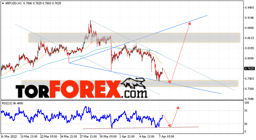 Таким образом, Криптовалюта XRP прогноз на 8 апреля 2022 предполагает попытку теста уровня поддержки вблизи области 0.7505. Откуда стоит ожидать продолжения роста криптовалюты с потенциальной целью на уровне 0.8975. Дополнительным сигналом в пользу подъёма Ripple выступит тест линии тренда на индикаторе относительной силы. Отменой варианта роста котировок станет падение и пробой области 0.7025. В этом случае стоит ожидать продолжения снижения по цифровой валюте с целью ниже 0.6505.