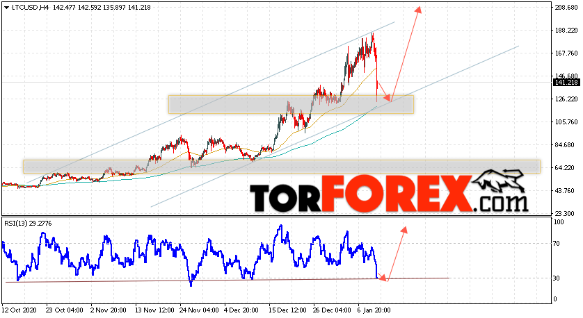 Таким образом, Litecoin прогноз курса криптовалют на 12 января 2021 предполагает попытку коррекции и тест области поддержки вблизи уровня 125.05. Откуда стоит ожидать отскок и продолжения роста LTC/USD в область выше уровня 210.05. Дополнительным сигналом в пользу подъёма Litecoin выступит тест линии тренда на индикаторе относительной силы. Отменой варианта роста станет падение и пробой области 105.05. Это укажет на продолжение снижения криптовалюты с целью ниже уровня 65.05.