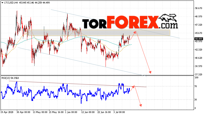 В пользу падения котировок LTC/USD выступит тест линии сопротивления на индикаторе относительной силы. Вторым сигналом станет отскок от верхней границы нисходящего канала. Отменой варианта падения станет сильный рост и пробой области 49.05. Это укажет на пробой области сопротивления и ускорение роста курса криптовалюты с потенциальной целью выше уровня 57.55. С пробоем области поддержки и закрытием котировок ниже уровня 42.05 стоит ожидать подтверждения развития нисходящей тенденции по Litecoin.