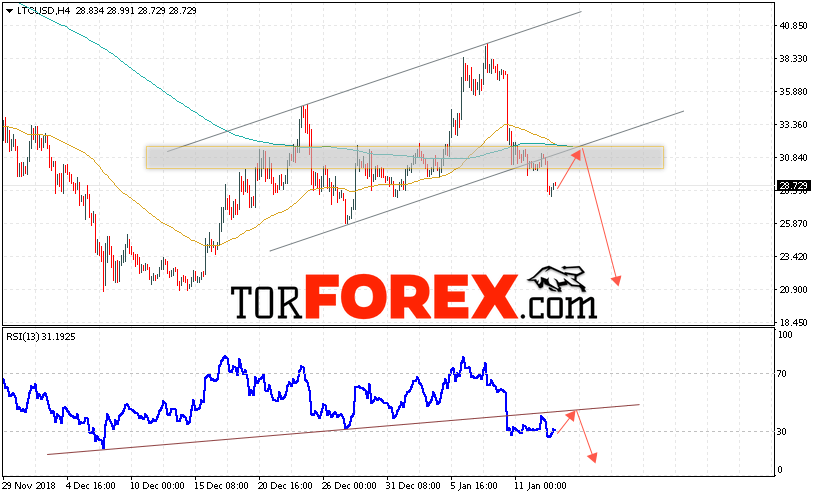 Таким образом, Litecoin прогноз курса криптовалют на 15 января 2019 предполагает попытку теста области сопротивления вблизи уровня 31.50. Откуда стоит ожидать отскок и продолжения падения LTC/USD в область ниже уровня 20.90. Дополнительным сигналом в пользу падения Litecoin выступит тест линии тренда на индикаторе относительной силы. Отменой варианта снижения станет сильный рост и пробой области 34.00. Это укажет на продолжение роста криптовалюты.