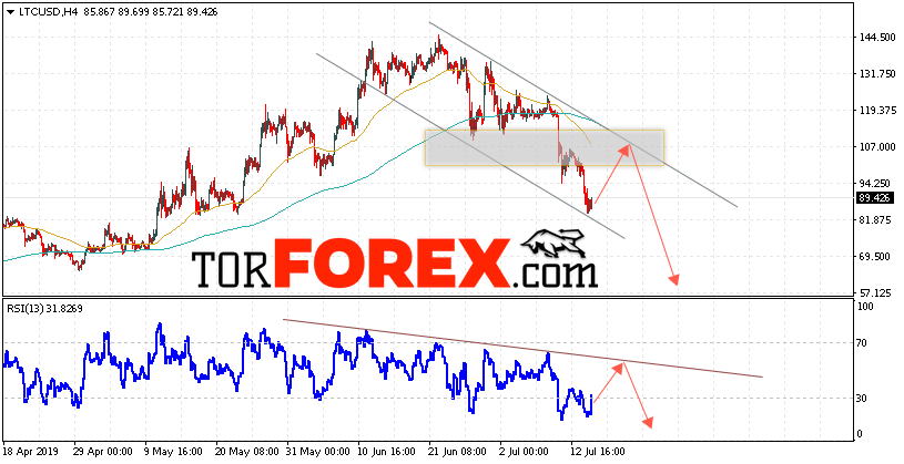 Таким образом, Litecoin прогноз курса криптовалют на 16 июля 2019 предполагает попытку теста области сопротивления вблизи уровня 107.00. Откуда стоит ожидать отскок и продолжения падения LTC/USD в область ниже уровня 57.00. Дополнительным сигналом в пользу снижения Litecoin выступит тест линии тренда на индикаторе относительной силы. Отменой варианта падения станет сильный рост и пробой области 120.00. Это укажет на продолжение подъёма криптовалюты с целью выше уровня 145.00.