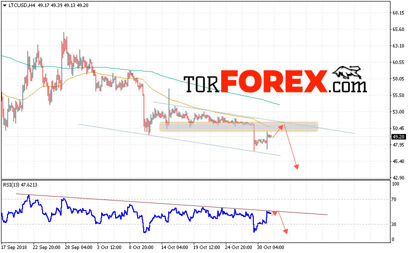 Таким образом, Litecoin прогноз курса криптовалют на 2 ноября 2018 предполагает попытку теста области сопротивления вблизи уровня 50.50, откуда стоит ожидать отскок и продолжения падения LTC/USD в область ниже уровня 44.50, дополнительным сигналом в пользу снижения Litecoin выступит тест линии тренда на индикаторе относительной силы, отменой варианта падения станет сильный рост и пробой области 52.50, что укажет на продолжение роста криптовалюты.
