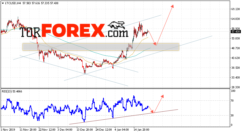 Таким образом, Litecoin прогноз курса криптовалют на 23 января 2020 предполагает попытку коррекции и тест области поддержки вблизи уровня 52.55. Откуда стоит ожидать отскок и продолжения роста LTC/USD в область выше уровня 75.05. Дополнительным сигналом в пользу подъёма Litecoin выступит тест линии тренда на индикаторе относительной силы. Отменой варианта роста станет падение и пробой области 42.05. Это укажет на продолжение снижения криптовалюты с целью ниже уровня 35.05.