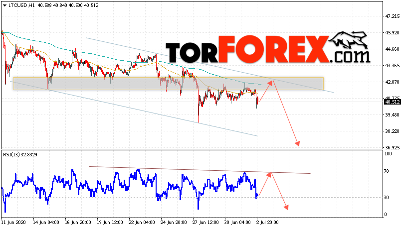 В пользу падения котировок LTC/USD выступит тест линии сопротивления на индикаторе относительной силы. Вторым сигналом станет отскок от верхней границы нисходящего канала. Отменой варианта падения станет сильный рост и пробой области 45.05. Это укажет на пробой области сопротивления и ускорение роста курса криптовалюты с потенциальной целью выше уровня 55.05. С пробоем области поддержки и закрытием котировок ниже уровня 38.55 стоит ожидать подтверждения развития нисходящей тенденции по Litecoin.