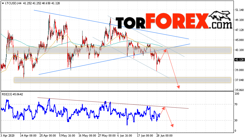 Таким образом, Litecoin прогноз курса криптовалют на 30 июня 2020 предполагает попытку коррекции и тест области сопротивления вблизи уровня 43.15. Откуда стоит ожидать отскок и продолжения падения LTC/USD в область ниже уровня 35.05. Дополнительным сигналом в пользу снижения Litecoin выступит тест линии тренда на индикаторе относительной силы. Отменой варианта падения станет сильный рост и пробой области 45.95. Это укажет на продолжение подъёма криптовалюты с целью выше уровня 55.05.