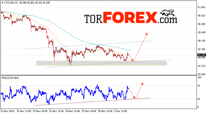 Таким образом, Litecoin прогноз курса криптовалют на 5 декабря 2019 предполагает попытку коррекции и тест области поддержки вблизи уровня 42.35. Откуда стоит ожидать отскок и продолжения роста LTC/USD в область выше уровня 53.05. Дополнительным сигналом в пользу подъёма Litecoin выступит тест линии тренда на индикаторе относительной силы. Отменой варианта роста станет падение и пробой области 37.05. Это укажет на продолжение снижения криптовалюты с целью ниже уровня 25.05.