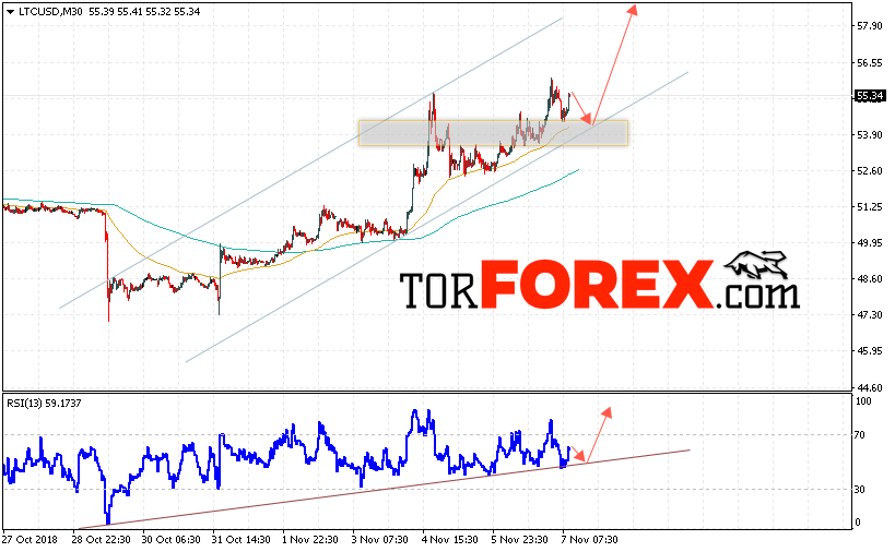 Таким образом, Litecoin прогноз курса криптовалют на 8 ноября 2018 предполагает попытку теста области поддержки вблизи уровня 54.00, откуда стоит ожидать отскок и продолжения роста LTC/USD в область выше уровня 58.50, дополнительным сигналом в пользу роста Litecoin выступит тест линии тренда на индикаторе относительной силы, отменой варианта роста станет падение и пробой области 53.00, что укажет на продолжение снижения криптовалюты.
