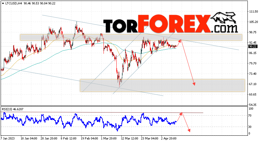 Дополнительным сигналом в пользу снижения котировок LTC/USD выступит тест линии сопротивления на индикаторе относительной силы (RSI). Вторым сигналом станет отскок от верхней границы нисходящего канала. Отменой варианта падения монеты станет сильный рост стоимости актива и пробой области 105.20. Это укажет на пробой области сопротивления и продолжение роста курса криптовалюты с потенциальной целью выше уровня 125.05. С пробоем области поддержки и закрытием котировок ниже уровня 85.00 стоит ожидать подтверждения развития нисходящего движения по криптовалюте Litecoin.