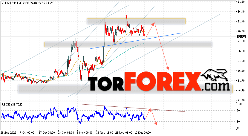 Таким образом, Litecoin прогноз курса на 16 декабря 2022 предполагает попытку коррекции и тест области сопротивления вблизи уровня 80.55. Откуда стоит ожидать отскок и продолжения падения цены LTC/USD в область ниже уровня 56.55. Дополнительным сигналом в пользу снижения Litecoin выступит тест линии тренда на индикаторе относительной силы. Отменой варианта падения станет сильный рост и пробой области 86.55. Это укажет на продолжение подъёма криптовалюты с целью выше уровня 105.05.