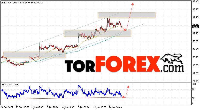 Дополнительным сигналом в пользу подъёма котировок LTC/USD выступит тест линии поддержки на индикаторе относительной силы (RSI). Вторым сигналом станет отскок от нижней границы бычьего канала. Отменой варианта роста монеты станет падение стоимости актива и пробой области 77.05. Это укажет на пробой области поддержки и продолжение падения курса криптовалюты с потенциальной целью ниже уровня 65.05. С пробоем области сопротивления и закрытием котировок выше уровня 94.55 стоит ожидать подтверждения развития бычьей тенденции по Litecoin.