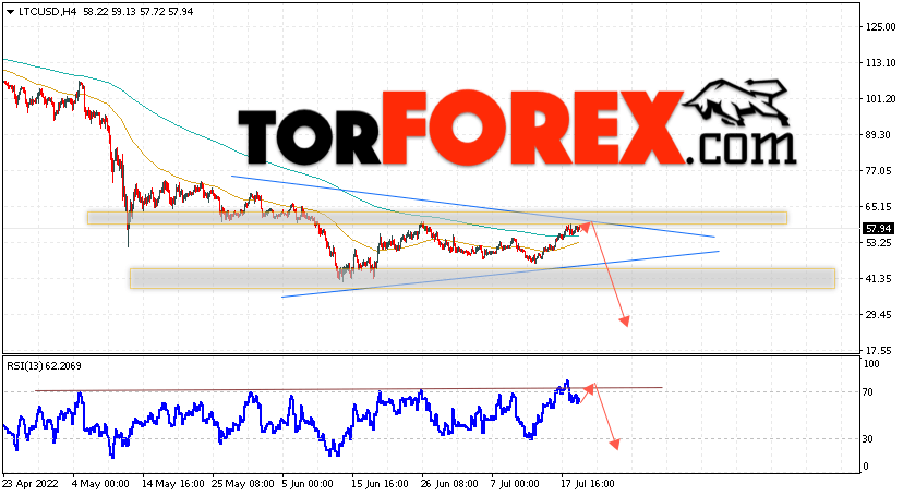 Таким образом, Litecoin прогноз курса на 21 июля 2022 предполагает попытку коррекции и тест области сопротивления вблизи уровня 59.45. Откуда стоит ожидать отскок и продолжения падения цены LTC/USD в область ниже уровня 29.05. Дополнительным сигналом в пользу снижения Litecoin выступит тест линии тренда на индикаторе относительной силы. Отменой варианта падения станет сильный рост и пробой области 69.05. Это укажет на продолжение подъёма криптовалюты с целью выше уровня 80.55.