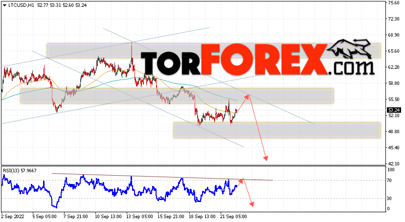 Дополнительным сигналом в пользу снижения котировок LTC/USD выступит тест линии сопротивления на индикаторе относительной силы (RSI). Вторым сигналом станет отскок от верхней границы медвежьего канала. Отменой варианта падения монеты станет сильный рост стоимости актива и пробой области 61.55. Это укажет на пробой области сопротивления и продолжение роста курса криптовалюты с потенциальной целью выше уровня 70.05. С пробоем области поддержки и закрытием котировок ниже уровня 47.05 стоит ожидать подтверждения развития медвежьей тенденции по Litecoin.