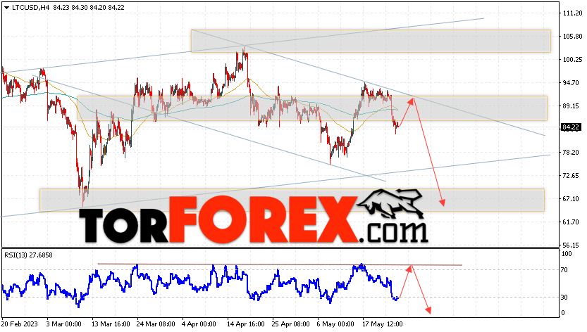 Дополнительным сигналом в пользу снижения котировок LTC/USD выступит тест линии сопротивления на индикаторе относительной силы (RSI). Вторым сигналом станет отскок от верхней границы нисходящего канала. Отменой варианта падения монеты станет сильный рост стоимости актива и пробой области 96.55. Это укажет на пробой области сопротивления и продолжение роста курса криптовалюты с потенциальной целью выше уровня 105.05. С пробоем области поддержки и закрытием котировок ниже уровня 70.05, стоит ожидать подтверждения развития медвежьего движения по криптовалюте Litecoin.