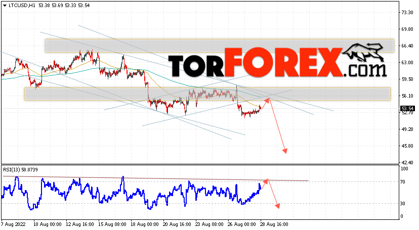 Дополнительным сигналом в пользу снижения котировок LTC/USD выступит тест линии сопротивления на индикаторе относительной силы (RSI). Вторым сигналом станет отскок от верхней границы нисходящего канала. Отменой варианта падения монеты станет сильный рост стоимости актива и пробой области 62.55. Это укажет на пробой области сопротивления и продолжение роста курса криптовалюты с потенциальной целью выше уровня 75.65. С пробоем области поддержки и закрытием котировок ниже уровня 49.05 стоит ожидать подтверждения развития медвежьей тенденции по Litecoin.