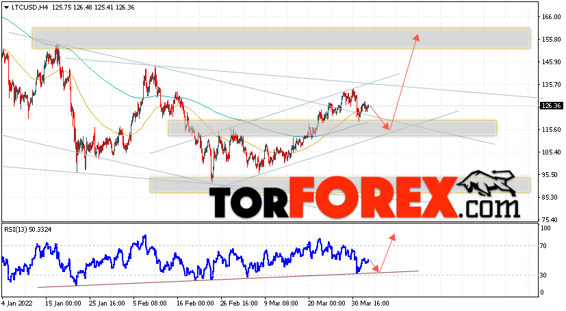 Таким образом, Litecoin прогноз курса на 4 апреля 2022 предполагает попытку коррекции и тест области поддержки вблизи уровня 115.65. Откуда стоит ожидать отскок и продолжения роста цены LTC/USD в область выше уровня 155.05. Дополнительным сигналом в пользу подъёма Litecoin выступит тест линии тренда на индикаторе относительной силы. Отменой варианта роста станет падение и пробой области 105.05. Это укажет на продолжение снижения криптовалюты с целью ниже уровня 80.05.
