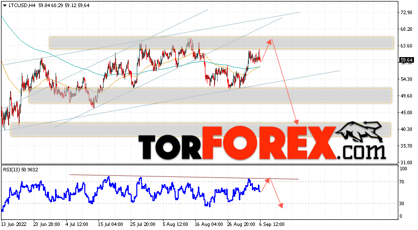 Таким образом, Litecoin прогноз курса на 7 сентября 2022 предполагает попытку коррекции и тест области сопротивления вблизи уровня 64.05. Откуда стоит ожидать отскок и продолжения падения цены LTC/USD в область ниже уровня 41.85. Дополнительным сигналом в пользу снижения Litecoin выступит тест линии тренда на индикаторе относительной силы. Отменой варианта падения станет сильный рост и пробой области 74.25. Это укажет на продолжение подъёма криптовалюты с целью выше уровня 80.05.