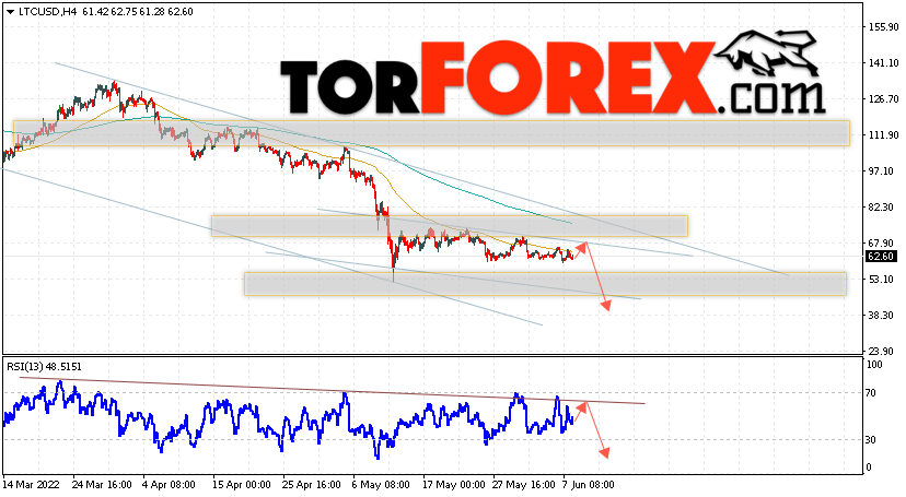 Дополнительным сигналом в пользу снижения котировок LTC/USD выступит тест линии сопротивления на индикаторе относительной силы (RSI). Вторым сигналом станет отскок от верхней границы нисходящего канала. Отменой варианта падения монеты станет сильный рост стоимости актива и пробой области 84.05. Это укажет на пробой области сопротивления и продолжение роста курса криптовалюты с потенциальной целью выше уровня 95.05. С пробоем области поддержки и закрытием котировок ниже уровня 50.05 стоит ожидать подтверждения развития медвежьей тенденции по Litecoin.