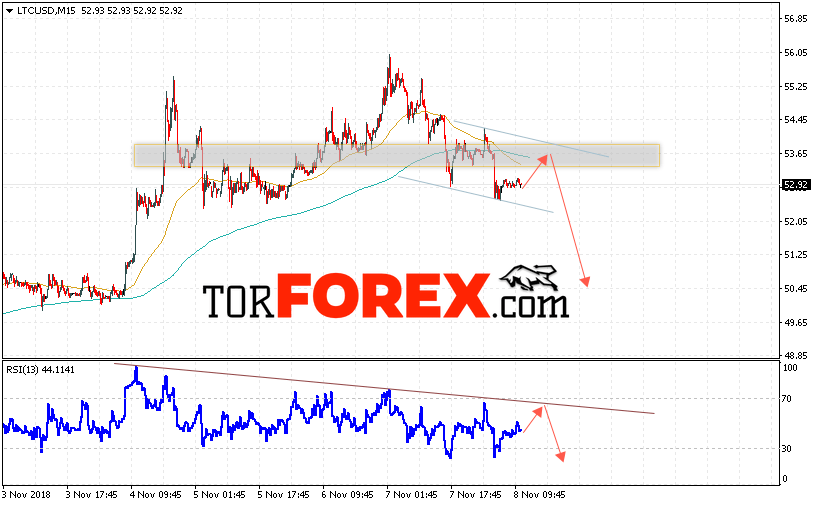 Таким образом, Litecoin прогноз курса криптовалют на 9 ноября 2018 предполагает попытку теста области сопротивления вблизи уровня 53.65. Откуда стоит ожидать отскок и продолжения падения LTC/USD в область ниже уровня 50.45. Дополнительным сигналом в пользу снижения Litecoin выступит тест линии тренда на индикаторе относительной силы. Отменой варианта падения станет сильный рост и пробой области 54.50, что укажет на продолжение роста криптовалюты.