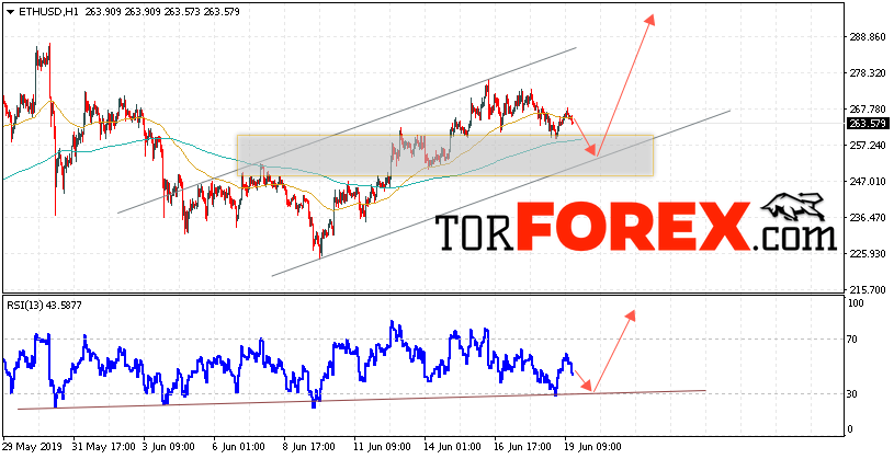 Таким образом, ETH/USD прогноз курса Ethereum на 20 июня 2019 предполагает попытку теста области поддержки вблизи уровня 255. Откуда стоит ожидать отскок и продолжения роста криптовалюты ETH/USD в область выше уровня 315. Дополнительным сигналом в пользу подъёма Ethereum выступит тест линии тренда на индикаторе относительной силы. Отменой варианта роста цифровой валюты выступит пробой области 240. Что укажет на продолжение падения с потенциальной целью ниже уровня 215.