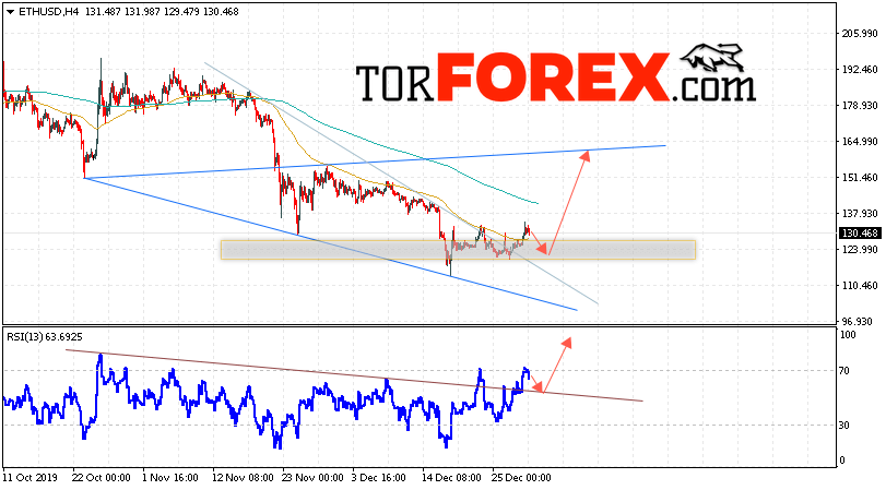 Таким образом, ETH/USD прогноз курса Ethereum на 31 декабря 2019 предполагает попытку коррекции и тест области поддержки вблизи уровня 120.65. Откуда стоит ожидать отскок и продолжения роста криптовалюты ETH/USD в область выше уровня 165.05. Дополнительным сигналом в пользу роста Ethereum выступит тест линии тренда на индикаторе относительной силы. Отменой варианта подъёма цифровой валюты станет пробой области 95.05. Что укажет на продолжение падения с потенциальной целью ниже уровня 65.05.