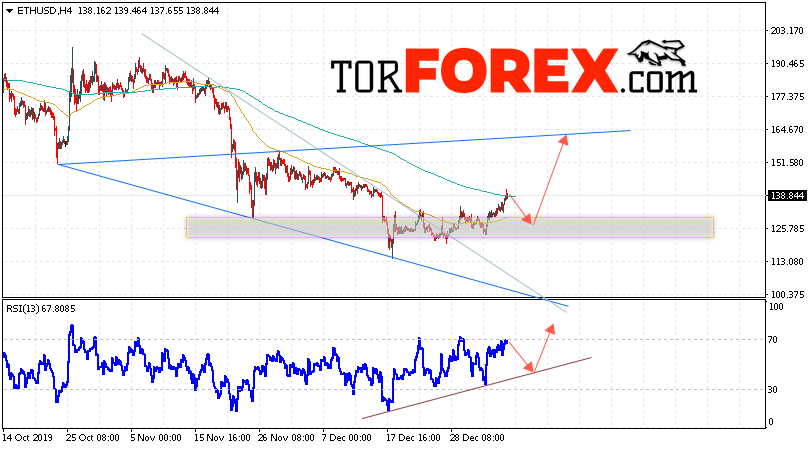 Таким образом, ETH/USD прогноз курса Ethereum на 7 января 2020 предполагает попытку коррекции и тест области поддержки вблизи уровня 125.05. Откуда стоит ожидать отскок и продолжения роста криптовалюты ETH/USD в область выше уровня 165.55. Дополнительным сигналом в пользу роста Ethereum выступит тест линии тренда на индикаторе относительной силы. Отменой варианта подъёма цифровой валюты станет пробой области 105.05. Что укажет на продолжение падения с потенциальной целью ниже уровня 75.05.