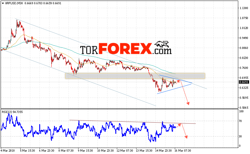 Таким образом, Ripple прогноз и аналитика на 17 марта 2018 предполагает попытку теста уровня сопротивления вблизи 0.68, откуда стоит ожидать падения криптовалюты с потенциальной целью на уровне 0.50, дополнительным сигналом в пользу снижения Ripple выступит тест линии тренда на индикаторе относительной силы.