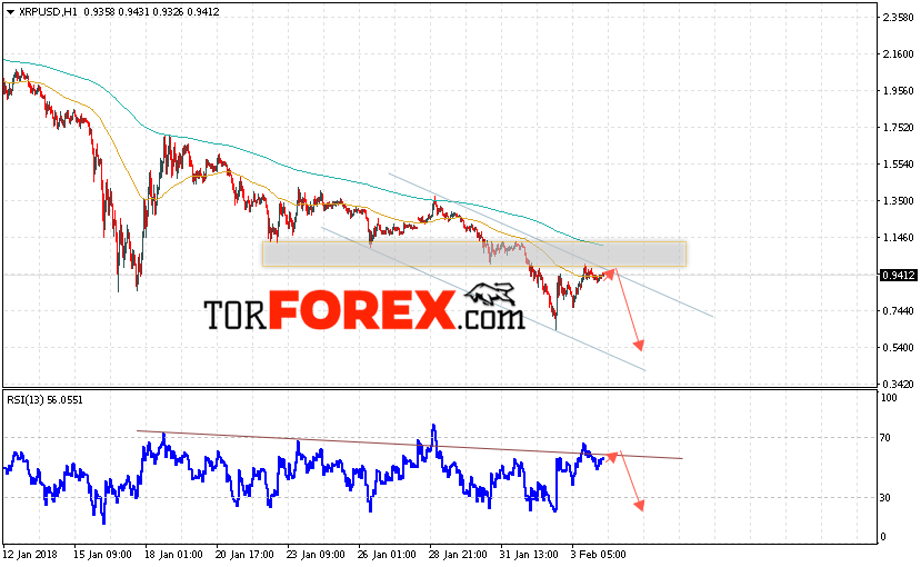 Таким образом, Ripple прогноз и аналитика на 5 февраля 2018 предполагает попытку теста уровня сопротивления вблизи 0.95, откуда стоит ожидать падение криптовалюты с потенциальной целью на уровне 0.55, дополнительным сигналом в пользу падения Ripple выступит тест линии тренда на индикаторе относительной силы.