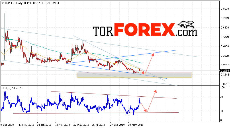 Таким образом, Ripple прогноз криптовалют на неделю 13 — 17 января 2020 предполагает попытку теста уровня поддержки вблизи области 0.1625. Откуда стоит ожидать продолжения роста котировок с потенциальной целью на уровне 0.3555. Дополнительным сигналом в пользу падения Ripple выступит тест линии тренда на индикаторе относительной силы. Отменой варианта снижения криптовалюты выступит пробой области 0.1205. Это укажет на продолжение снижения с целью ниже уровня 0.0705.