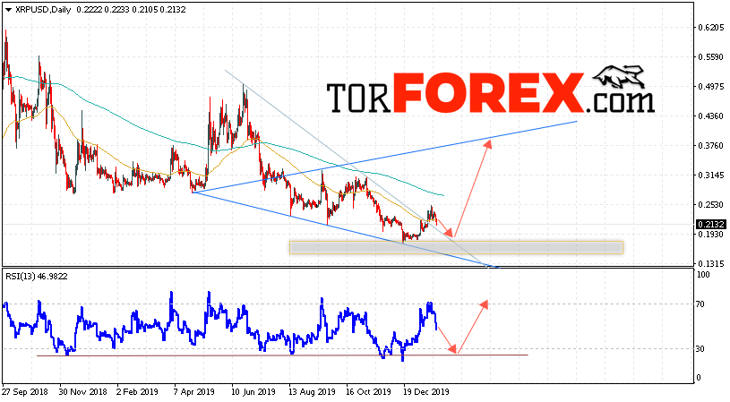 Таким образом, Ripple прогноз криптовалют на неделю 27 — 31 января 2020 предполагает попытку теста уровня поддержки вблизи области 0.1885. Откуда стоит ожидать продолжения роста котировок с потенциальной целью на уровне 0.3765. Дополнительным сигналом в пользу падения Ripple выступит тест линии тренда на индикаторе относительной силы. Отменой варианта снижения криптовалюты выступит пробой области 0.1345. Это укажет на продолжение снижения с целью ниже уровня 0.1005.