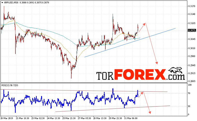 Таким образом, Криптовалюта Ripple прогноз курса на 2 апреля 2019 предполагает попытку теста уровня сопротивления вблизи области 0.3105. Откуда стоит ожидать продолжения падения криптовалюты с потенциальной целью на уровне 0.2945. Дополнительным сигналом в пользу снижения Ripple выступит тест линии тренда на индикаторе относительной силы. Отменой варианта снижения котировок станет сильный рост и пробой области 0.3155. В этом случае стоит ожидать продолжения развития восходящей тенденции по цифровой валюте с целью выше 0.3245.
