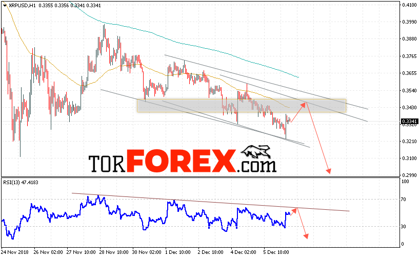 В пользу падения котировок XRP/USD выступит тест линии тренда на индикаторе относительной силы. А также отскок от верхней границы нисходящего канала. Отменой варианта падения криптовалюты станет сильный рост и закрытие котировок выше уровня 0.3600. Это укажет на пробой уровня сопротивления и продолжение роста XRP/USD в область выше уровня 0.4000. С пробоем уровня поддержки и закрытием ниже области 0.3150 стоит ожидать подтверждения развития снижения по Ripple.