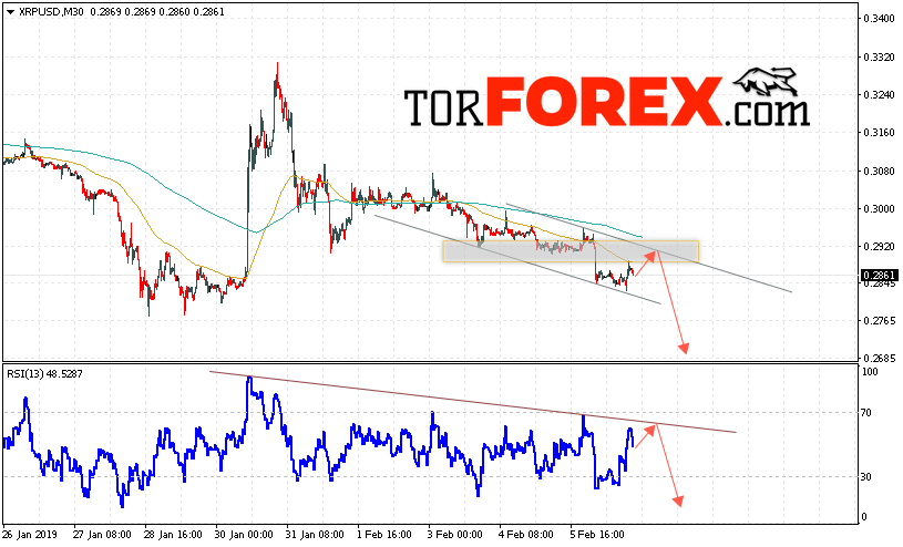 Таким образом, Криптовалюта Ripple прогноз курса на 7 февраля 2019 предполагает попытку теста уровня сопротивления вблизи области 0.2910. Откуда стоит ожидать продолжения падения криптовалюты с потенциальной целью на уровне 0.2685. Дополнительным сигналом в пользу снижения Ripple выступит тест линии тренда на индикаторе относительной силы. Отменой варианта падения котировок станет сильный рост и пробой области 0.3000. В этом случае стоит ожидать продолжения развития восходящей тенденции по цифровой валюте с целью выше 0.3450.